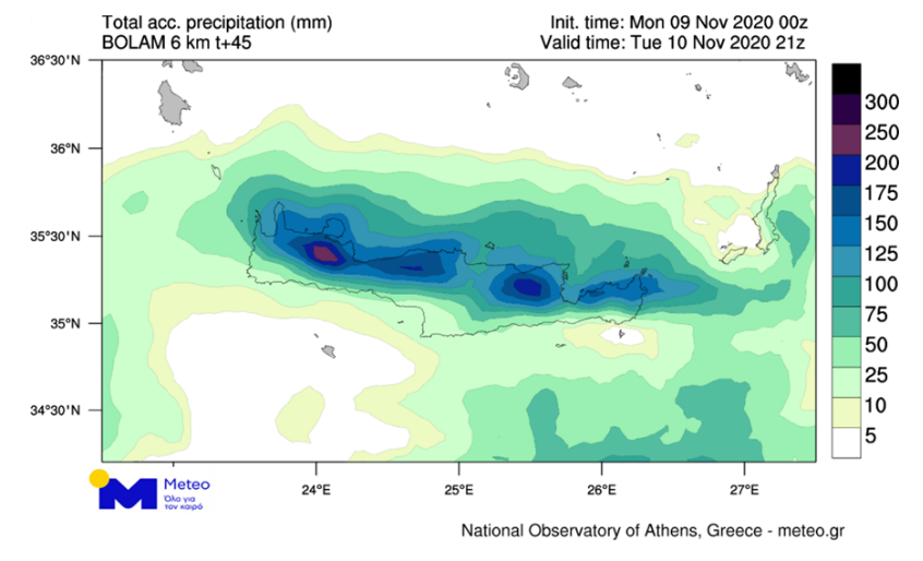 Τα εκτιμώμενα αθροιστικά ύψη βροχόπτωσης στην Κρήτη