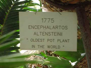 Πρόκειται για μια γιγάντια κύκα, ένα σπάνιο φοινικοειδές της Νοτίου Αφρικής με το λατινικό όνομα Encephalartos altensteinii, που φέτος έκλεισε τα 245 χρόνια ζωής, έχοντας κατακτήσει το ρεκόρ του μακροβιότερου καλλιεργούμενου σε γλάστρα φυτού. Ανήκει στην τάξη των κυκαδόφυτων, τα οποία είναι προϊστορικά φυτά που κυριαρχούσαν στη γη πριν από 250 εκατομμύρια χρόνια, πριν την εμφάνιση των δεινοσαύρων και των ανθοφόρων φυτών.