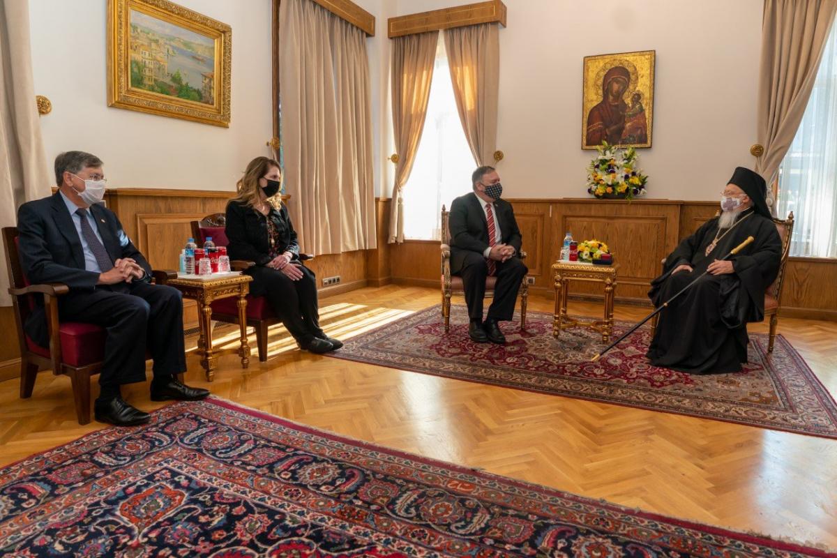 Με τον Οικουμενικό Πατριάρχη Βαρθολομαίο συναντάται στο Φανάρι ο Αμερικανός υπουργός Εξωτερικών Μάικ Πομπέο. Νωρίτερα ο Πρωθυπουργός είχε προγραμματισμένη τηλεφωνική επικοινωνία με τον Προκαθήμενο της Ορθοδοξίας, ενδεικτικό της σημασίας που αποδίδει η Αθήνα στη συνάντηση.