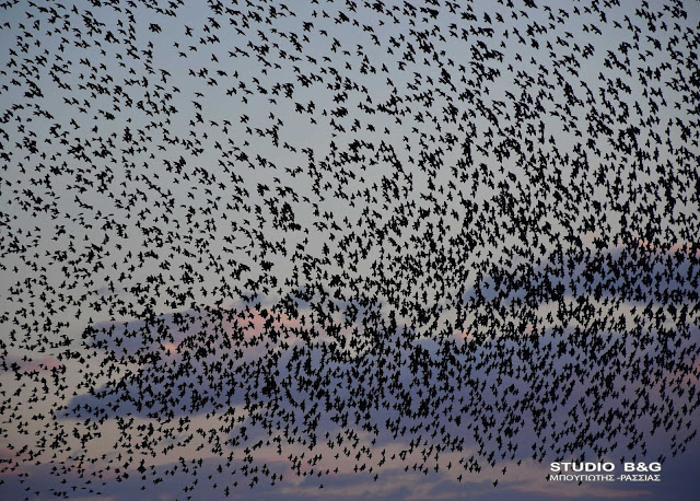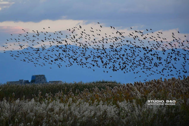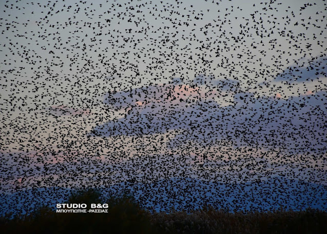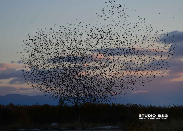 Κάθε απόγευμα αυτή την εποχή ο ουρανός του Ναυπλίου – και όχι μόνο – γεμίζει με χιλιάδες ψαρόνια που με τον εντυπωσιακό τους εναέριο «χορό» τραβούν τα βλέμματα των περαστικών ενώ οι σχηματισμοί τους προκαλούν δέος.