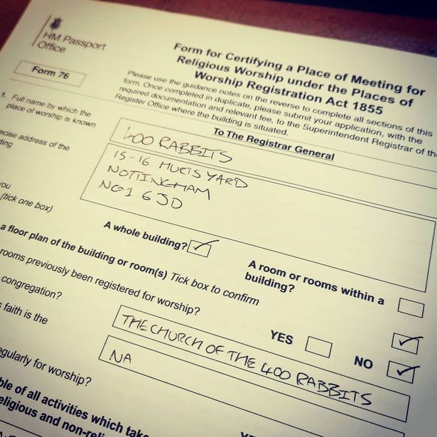 Έκανε λοιπόν αίτηση στις αρμόδιες αρχές της περιφέρειας, ζητώντας να μετατραπεί το μαγαζί του σε τόπο θρησκευτικής λατρείας. Και αυτό γιατί οι εκκλησίες στην Αγγλία, όπως και όλοι οι θρησκευτικοί τόποι λατρείας παραμένουν ανοιχτοί. Για την ακρίβεια δημιουργεί μια νέα θρησκεία και το μπαρ να είναι πλέον εκκλησία!