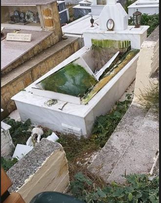Φωτογραφίες που δημοσίευσε το skai.gr αποτυπώνουν τις καταστροφές που καταγράφηκαν στο νεκροταφείο του χωριού, όπου από την ένταση του σεισμού, έσπασαν οι τάφοι.