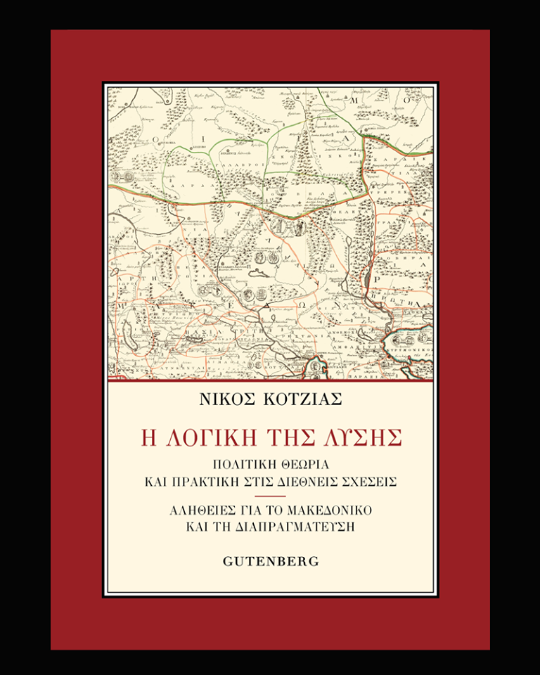 Η εικόνα ίσως περιέχει: κείμενο που λέει “ΝΙΚΟΣ ΚΟΤΖΙΑΣ Η ΛΟΓΙΚΗ ΤΗΣ ΛΥΣΗΣ ΠΟΛΙΤΙΚΗ ΘΕΩΡΙΑ ΚΑΙ ΠΡΑΚΤΙΚΗ ΣΤΙΣ ΔΙΕΘΝΕΙΣ ΣΧΕΣΕΙΣ ΑΛΗΘΕΙΕΣ ΓΙΑ TO ΜΑΚΕΔΟΝΙΚΟ ΚΑΙ ΤΗ ΔΙΑΠΡΑΓΜΑΤΕΥΣΗ GUTENBERG”