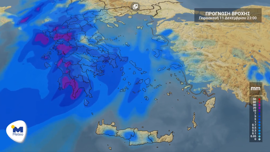 Βροχές, σποραδικές καταιγίδες, καθώς και χιονοπτώσεις στα ορεινά αναμένονται σημερα, Παρασκευή 11 Δεκεμβρίου 2020. Η θερμοκρασία δεν θα παρουσιάσει αξιόλογη μεταβολή, ενώ οι άνεμοι θα πνέουν νότιοι έως 8 μποφόρ στο Αιγαίο.