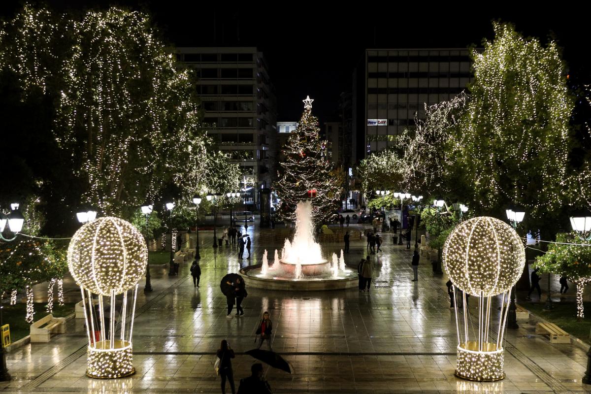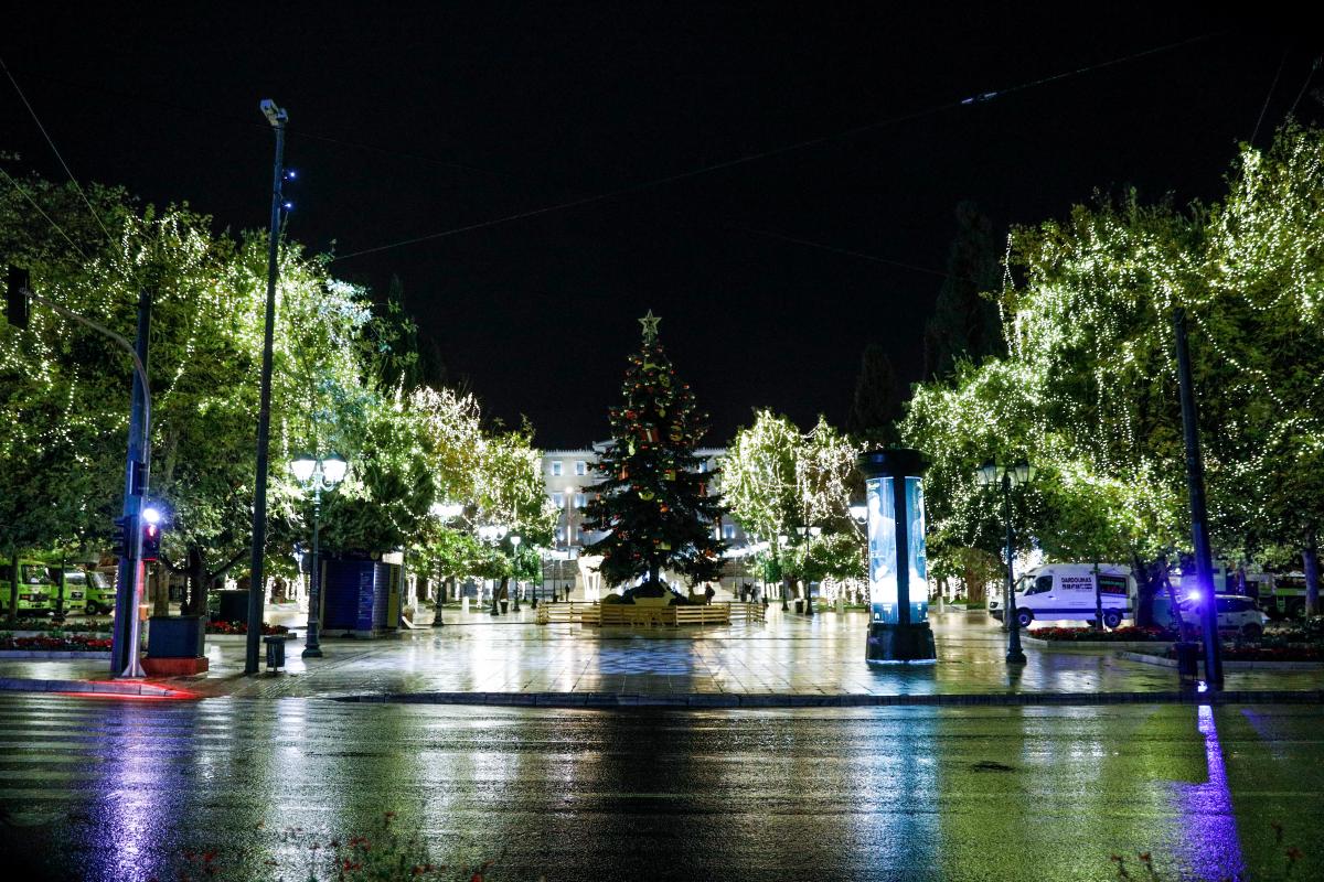 Στο κέντρο της πλατείας Συντάγματος τοποθετήθηκε ένα φυσικό δέντρο το οποίο στολίστηκε παραδοσιακά, θυμίζοντας μια μεγέθυνση των δέντρων που συναντάμε συνήθως στα σπίτια αυτές τις μέρες.
