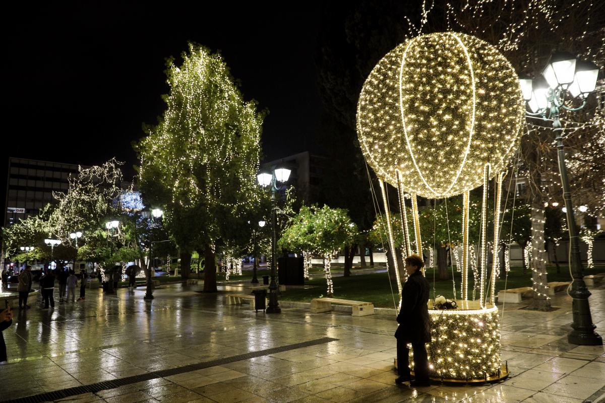 Τέλος, δύο φωτεινά αερόστατα στέκουν πίσω από το συντριβάνι και λίγα μέτρα από την είσοδο του Μετρό Συντάγματος, χαρίζοντας ακόμη περισσότερο φως στον χώρο.