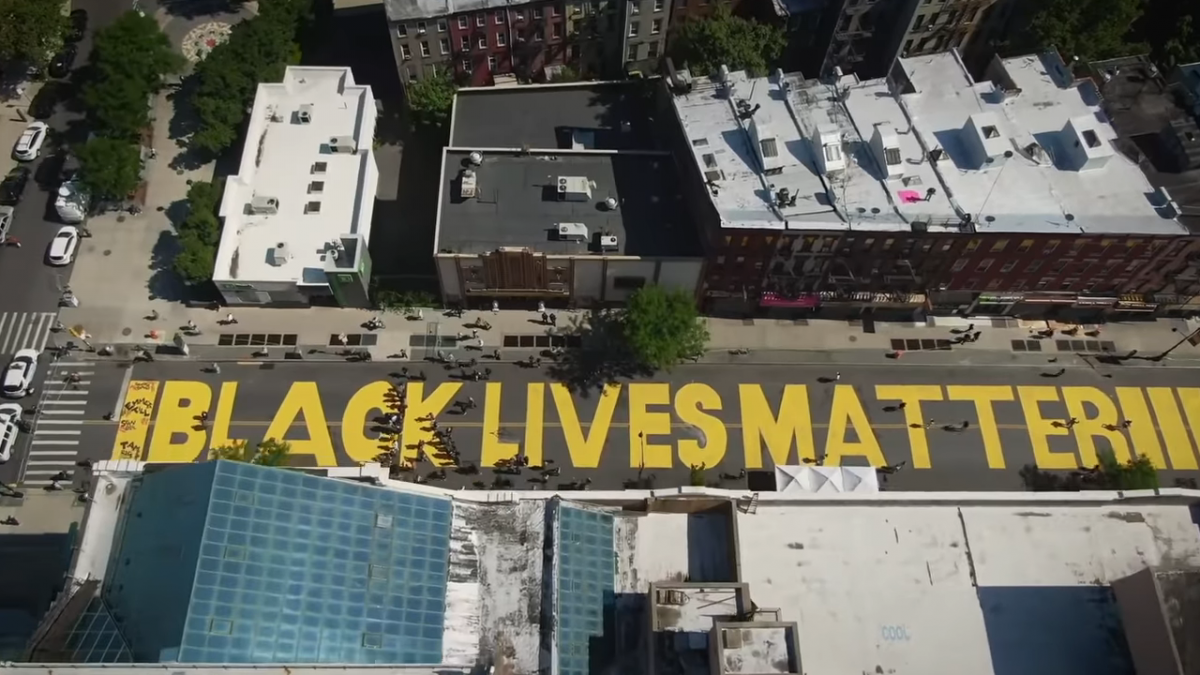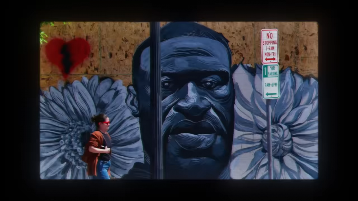 Το βίντεο όμως τελειώνει με «ελπίδα» άνθρωποι σε καραντίνα παίζουν μουσική στις βεράντες και αστυνομικούς που γονατίζουν δίπλα σε διαδηλωτές προς τιμήν του Τζορτζ Φλόιντ.