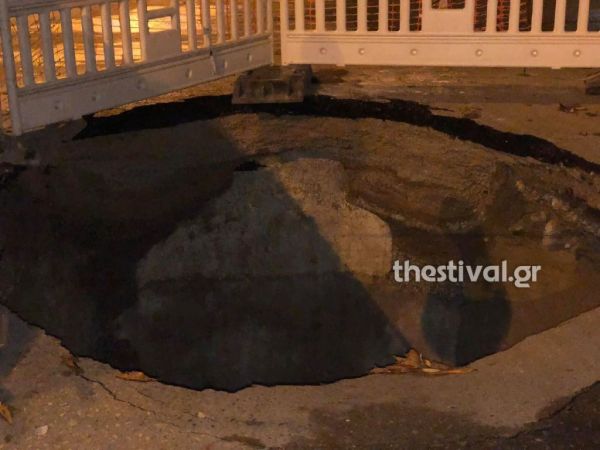 Ο τεράστιος κρατήρας βρίσκεται στην οδό Εθνικής Αντιστάσεως, έναν από τους κεντρικότερους δρόμους της Θεσσαλονίκης.