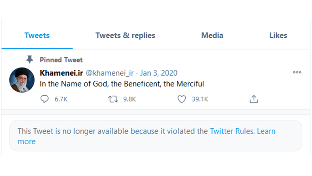 Το Twitter διέγραψε μήνυμα του ανώτατου θρησκευτικού ηγέτη του Ιράν, στο οποίο δήλωνε ότι δεν μπορεί να εμπιστευτεί τα αμερικανικά και τα βρετανικά εμβόλια για τον νέο κορωνοϊό, θεωρώντας πως η ανάρτηση παραβιάζει τους κανόνες της πλατφόρμας.