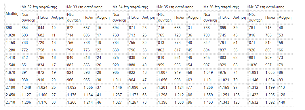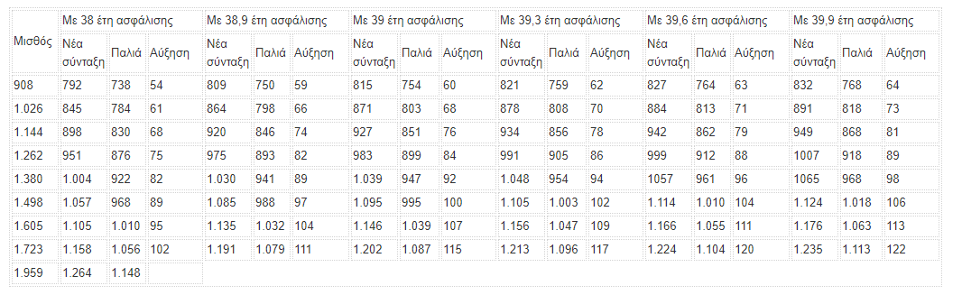 Οι νέοι συντελεστές υπολογισμού/επανυπολογισκού συντάξεων αυξάνονται προοδευτικά ως τα 40 χρόνια, ενώ από τα 40 έτη και μετά, οι αυξήσεις συντάξεων είναι μικρότερες λόγω περιορισμένης προσαύξησης με 0,5% ανά έτος.