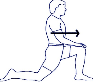 Εκτέλεση: σπρώξτε ελαφρά τα καθιστικά σας όπως δείχνει το βέλος μέχρι να νιώσετε διάταση στο λαγονοψοϊτη. Για περισσότερη διάταση ανεβάστε στο χέρι ψηλά, της πλευρά που το πόδι είναι τεντωμένο, με φορά προς το λυγισμένο πόδι εικ. 2