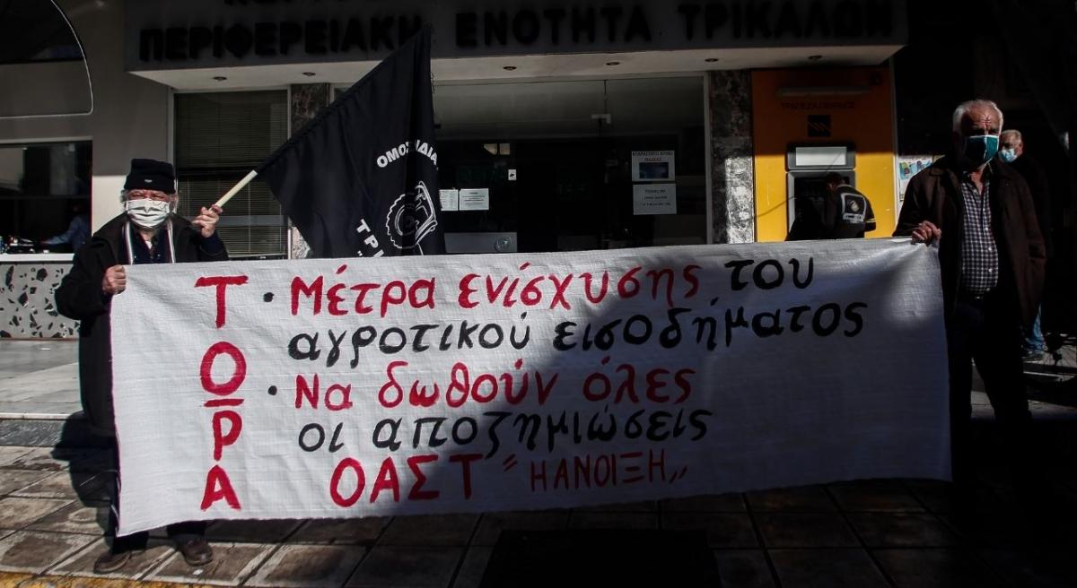 Η διαμαρτυρία πραγματοποιήθηκε μετά από κάλεσμα της Ομοσπονδίας Αγροτικών Συλλόγων νομού Τρικάλων “Η Άνοιξη”.
