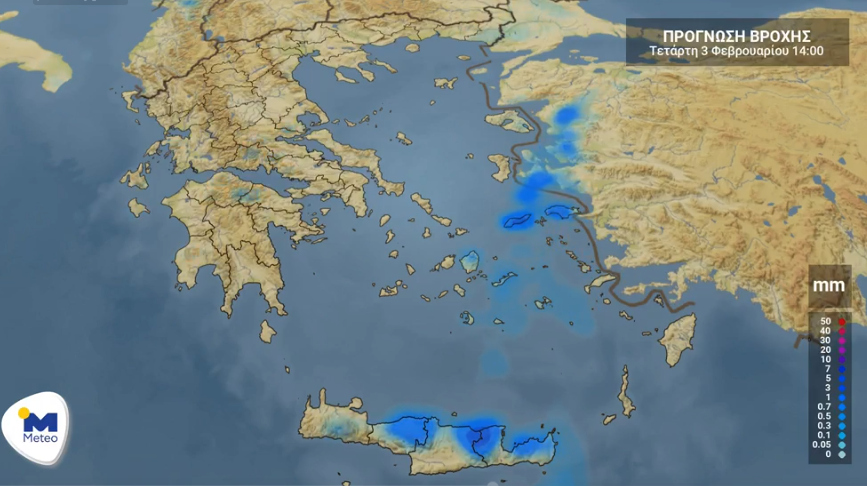 Βροχές και καταιγίδες στο Ανατολικό Αιγαίο, εξασθενημένοι άνεμοι και άνοδος της θερμοκρασίας θα παρατρηρηθούν σήμερα, Τετάρτη 3 Φεβρουαρίου.