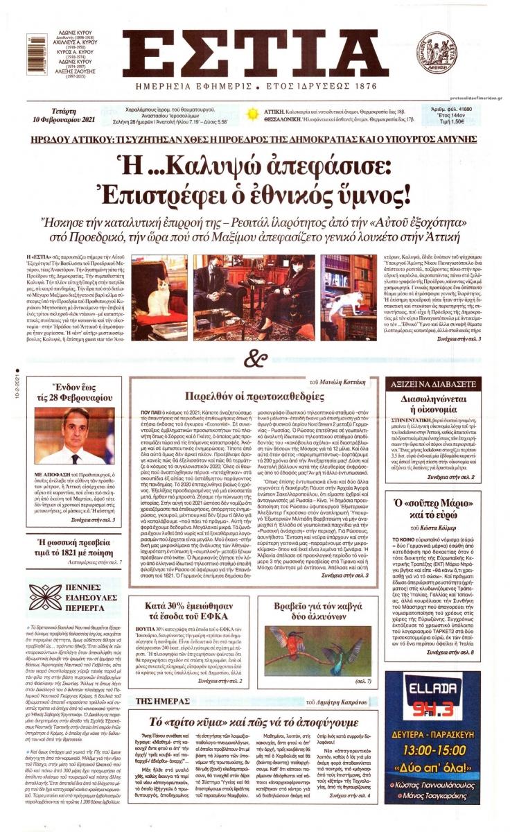 Γράφει μεταξύ άλλων η εφημερίδα στο πρωτοσέλιδό της:
