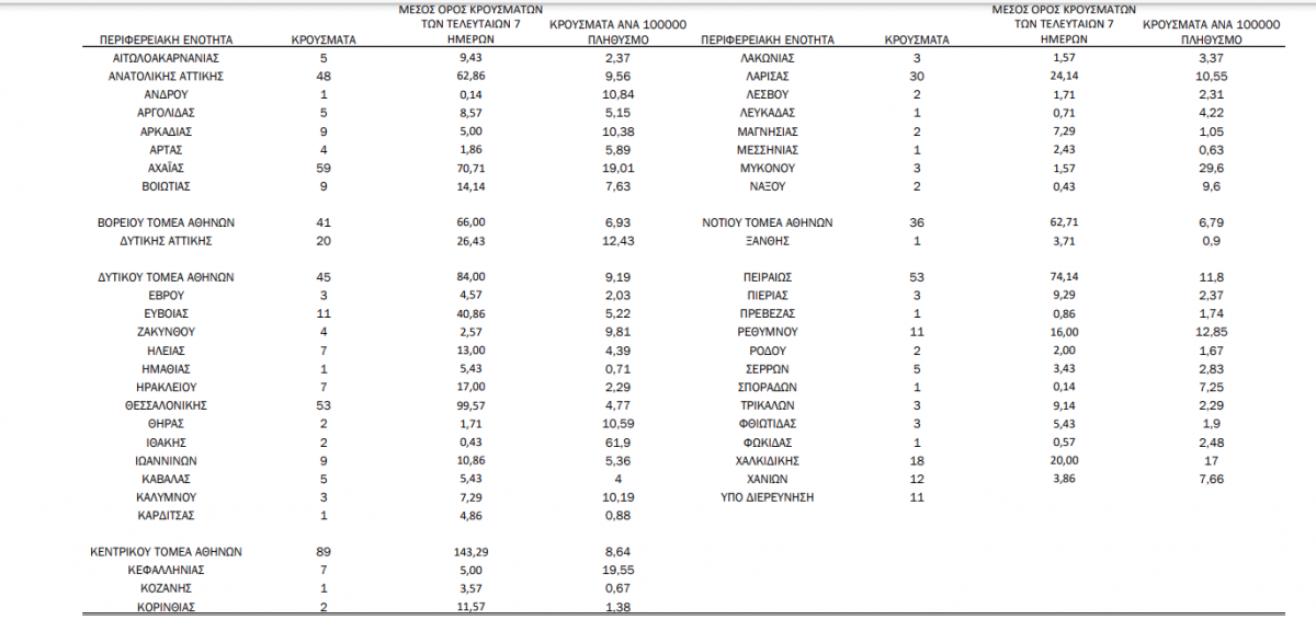 Τα κρούσματα κατανέμονται γεωγραφικώς ως εξής: