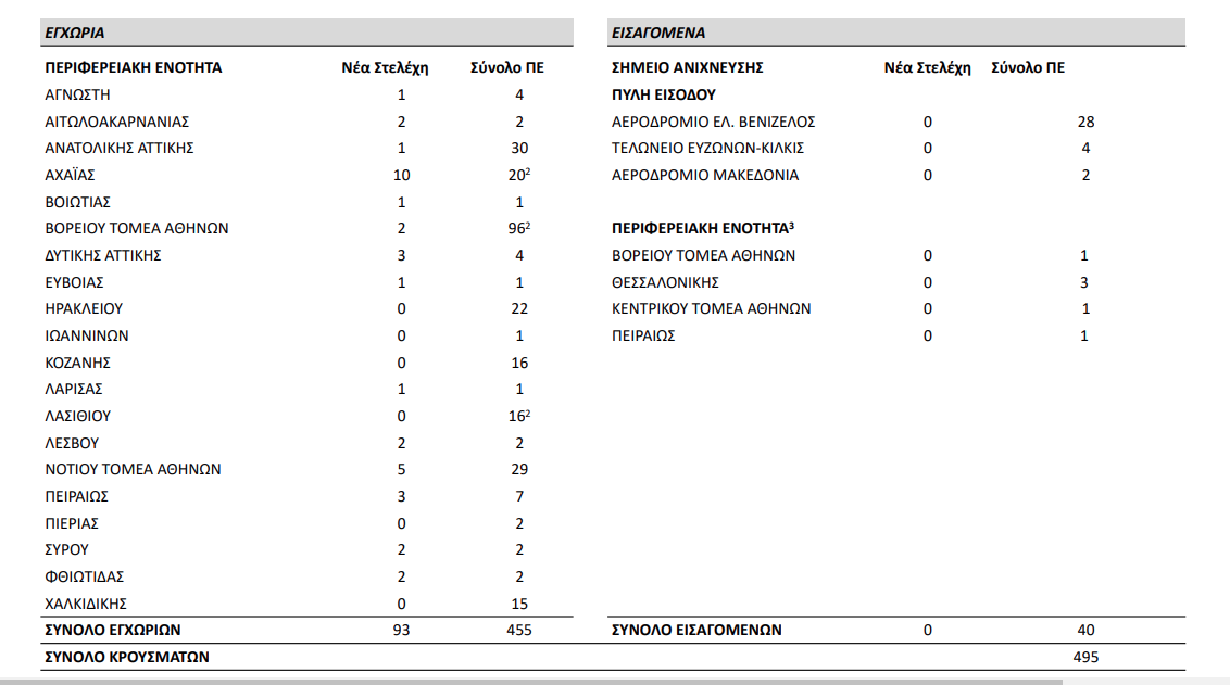 Οι νέοι θάνατοι ασθενών με COVID-19 είναι 23, ενώ από την έναρξη της επιδημίας έχουν καταγραφεί συνολικά 6126 θάνατοι.