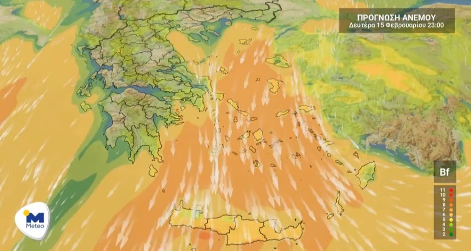 Οι άνεμοι θα πνέουν στο Αιγαίο από βόρειες διευθύνσεις σχεδόν θυελλώδεις έως θυελλώδεις 7-8 μποφόρ και τοπικά στο Κεντρικό και Νότιο Αιγαίο πολύ θυελλώδεις 9 μποφόρ, ενώ στο Ιόνιο από ανατολικές διευθύνσεις μέτριοι έως ισχυροί 5-6 μποφόρ και τις πρωινές ώρες πρόσκαιρα σχεδόν θυελλώδεις 7 μποφόρ, όπου σταδιακά θα στραφούν σε βόρειους και θα εξασθενήσουν.