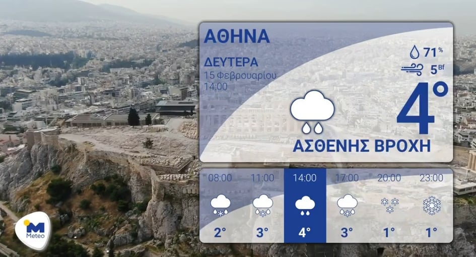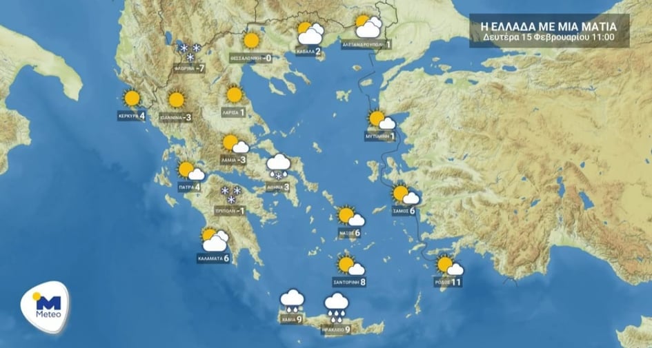 Πιο αναλυτικά, σύμφωνα μετο meteo , gια τη Δευτέρα 15 Φεβρουαρίου 2021 προβλέπονται αρχικά στα κεντρικά και νότια νεφώσεις με χιονοπτώσεις στα ηπειρωτικά, χιονόνερο στα παραθαλάσσια και νησιωτικά τμήματα, όπου βαθμιαία θα περιοριστούν σε Ανατολική Στερεά Ελλάδα, Εύβοια, Σποράδες, Κυκλάδες και Κρήτη, με ένταση των φαινομένων και χιονοπτώσεις σε χαμηλότερα υψόμετρα στις προαναφερόμενες περιοχές τις βραδινές ώρες.