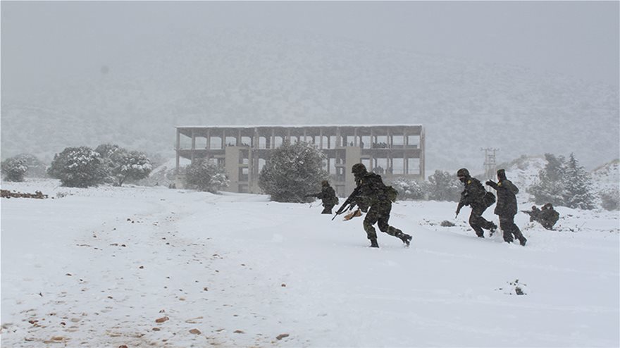 Οι ασκήσεις του στρατού κάτω από σκληρές συνθήκες είναι μέσα στο πρόγραμμα. Έτσι οι σπουδαστές της σχολής Ευελπίδων, οι αυριανοί αξιωματικοί του στρατού, αλλά και εκείνοι της σχολής Μονίμων Υπαξιωματικών πραγματοποίησαν ασκήσεις μέσα στα χιόνια σε πολύ δύσκολες καιρικές συνθήκες.