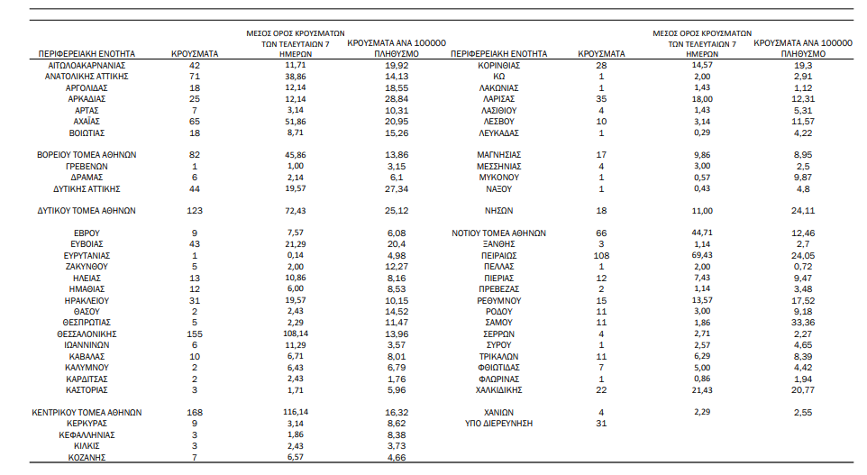 Οι νέοι θάνατοι ασθενών με COVID-19 είναι 23, ενώ από την έναρξη της επιδημίας έχουν καταγραφεί συνολικά 6.272 θάνατοι. Το 95.7% είχε υποκείμενο νόσημα ή/και ηλικία 70 ετών και άνω.