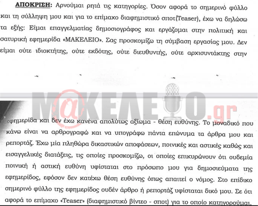 «Είμαι δημοσιογράφος και όχι εκδότης της εφημερίδας»