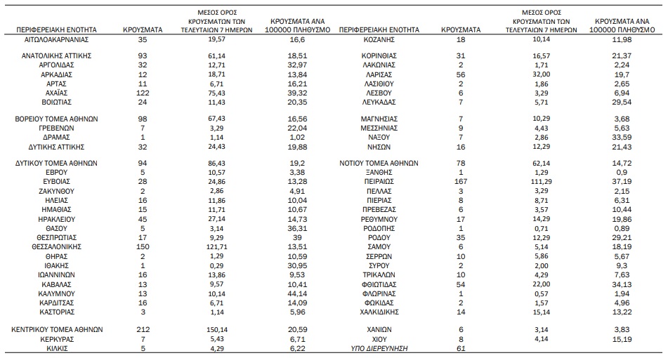 Η γεωγραφική κατανομή των νέων κρουσμάτων: