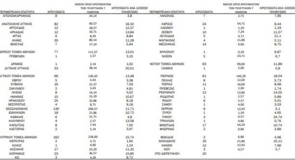 Σύμφωνα με την ανακοίνωση του ΕΟΔΥ: