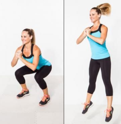 Καθίσματα με τα πόδια σε άνοιγμα μεγαλύτερο των ώμων και εναλλάξ ή ταυτόχρονα για πιο προχωρημένους άρση γάμπας