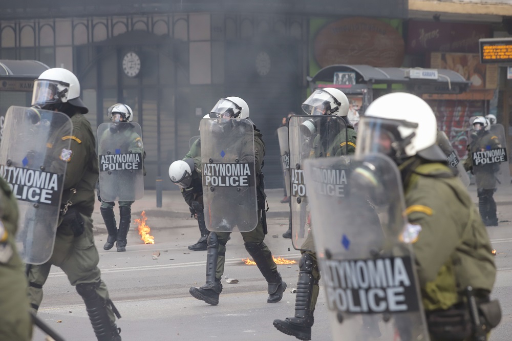 Αμέσως μετά ξέσπασε ένταση, άγνωστοι πέταξαν πέτρες προς τα ΜΑΤ, τα οποία απάντησαν με χρήση χημικών και κρότους λάμψης. Στη συνέχεια, οι αστυνομικοί κυνήγησαν τους διαδηλωτές στους δρόμους της πόλης.