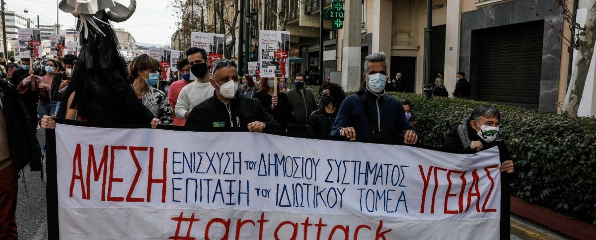 Πορεία στο κέντρο της Αθήνας πραγματοποιούν οι καλλιτέχνες, στο πλαίσιο της διήμερης δράσης #artattack.