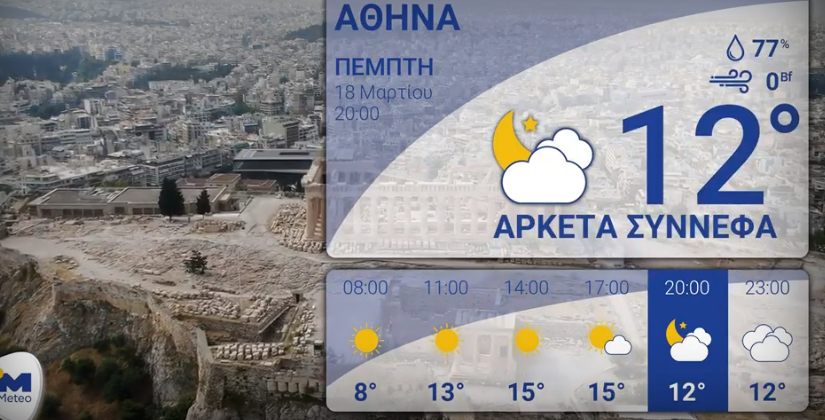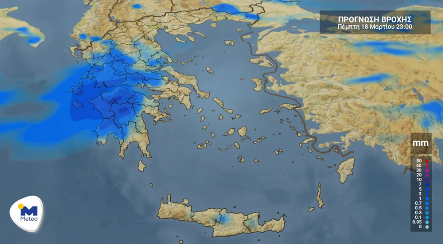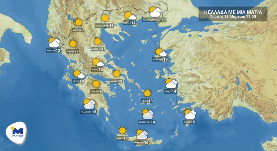 Πιο αναλυτικά, σύμφωνα με το meteo, για σήμερα, Πέμπτη 18 Μαρτίου 2021 προβλέπονται τοπικές βροχές τις πρωινές ώρες στο Ανατολικό Αιγαίο, ενώ στην υπόλοιπη χώρα ηλιοφάνεια με λίγες νεφώσεις, οι οποίες βαθμιαία θα πυκνώσουν και θα σημειωθούν βροχές στα δυτικά και σταδιακά στα κεντρικά και βόρεια.