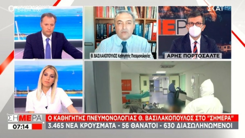Υπέρ του ανοίγματος των μικρών εμπορικών μαγαζιών (καφέ, καταστήματα, εστιατόρια) με ραντεβού στις μεγάλες πόλεις και χωρίς ραντεβού στις μικρές τάχθηκε μέσω του ΣΚΑΪ ο καθηγητής Πνευμονολογίας Εντατικής Θεραπείας Θόδωρος Βασιλακόπουλος.
