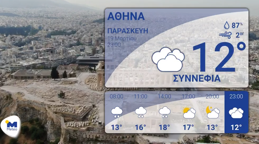 Άστατο καιρό, με παροδικές βροχές κυρίως τις πρωινές και βραδινές ώρες, αλλά και μεγάλα διαστήματα βελτιωμένου καιρού περιμένουμε την Παρασκευή στην Αττική. Η θερμοκρασία θα κυμανθεί από 9 έως 16 βαθμούς Κελσίου. Οι άνεμοι θα πνέουν από μεταβλητές διευθύνσεις ασθενείς έως σχεδόν μέτριοι 3-4 μποφόρ και μετά το απόγευμα από ανατολικές – νοτιοανατολικές διευθύνσεις μέτριοι 4-5 μποφόρ.