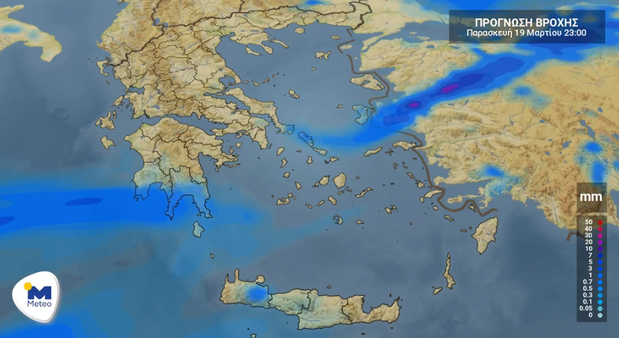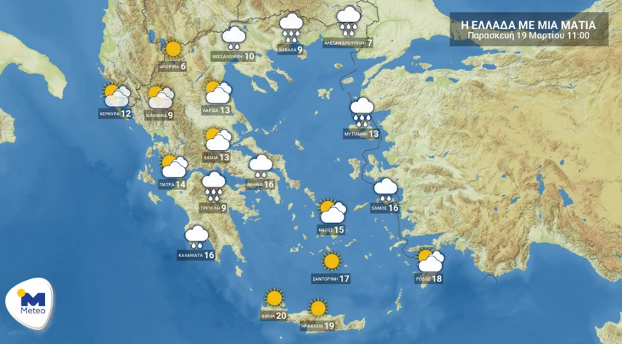 Πιο αναλυτικά, σύμφωνα με το meteo, προβλέπονται αρχικά βροχές και τοπικές καταιγίδες στο Ανατολικό και Βόρειο Αιγαίο, στις Κυκλάδες, στην Ανατολική Μακεδονία, στη Θράκη, στην Πελοπόννησο και στην Ανατολική Στερεά Ελλάδα με πρόσκαιρη βελτίωση στη συνέχεια.