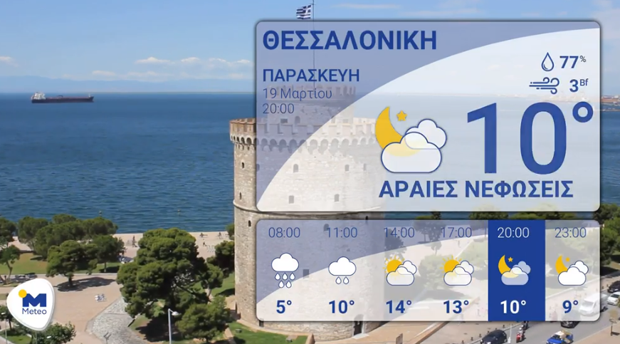 Ηλιοφάνεια με λίγες νεφώσεις παροδικά αυξημένες περιμένουμε την Παρασκευή στη Θεσσαλονίκη. Η θερμοκρασία θα κυμανθεί από 5 έως 14 βαθμούς Κελσίου. Οι άνεμοι στο Θερμαϊκό θα πνέουν κυρίως από βόρειες διευθύνσεις μέτριοι 4-5 μποφόρ, με εξασθένηση.