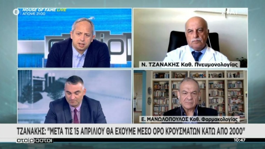 Αισιόδοξος ότι μετά τις 20 Απριλίου τα δύο τρίτα της χώρας θα είναι «κίτρινα» ή «πράσινα» στον επιδημιολογικό χάρτη, εμφανίστηκε ο καθηγητής πνευμονολογίας Νίκος Τζανάκης μιλώντας στην τηλεόραση του ΣΚΑΪ και την εκπομπή «Σήμερα».