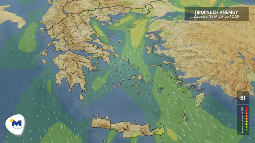 Οι άνεμοι στο Αιγαίο θα πνέουν από βόρειες διευθύνσεις 3 έως 5 μποφόρ και στα Δωδεκάνησα 4 έως 6 μποφόρ. Στο Ιόνιο οι άνεμοι θα πνέουν από βορειοδυτικές διευθύνσεις 3 έως 5 μποφόρ και στο Βόρειο Ιόνιο από το μεσημέρι 4 έως 6 μποφόρ.