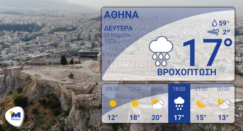 Στην Αττική αναμένεται αρχικά ηλιοφάνεια, από το μεσημέρι όμως θα αναπτυχθούν νεφώσεις και υπάρχει μικρή πιθανότητα ασθενών πρόσκαιρων βροχών τοπικού χαρακτήρα. Οι άνεμοι θα πνέουν από βόρειες διευθύνσεις έως 3 μποφόρ. Η θερμοκρασία στο κέντρο των Αθηνών θα κυμανθεί από 9 έως 20 βαθμούς Κελσίου.