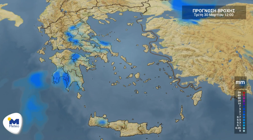 Πιο αναλυτικά, σύμφωνα με το meteo, τοπικές βροχές και σποραδικές καταιγίδες θα εκδηλωθούν κυρίως σε περιοχές της κεντρικής, ανατολικής και νότιας ηπειρωτικής χώρας και στο Ιόνιο. Στη Δυτική και Νότια Πελοπόννησο και στα νησιά του Κεντρικού Ιονίου τα φαινόμενα από το μεσημέρι και μετά θα είναι τοπικά έντονα.