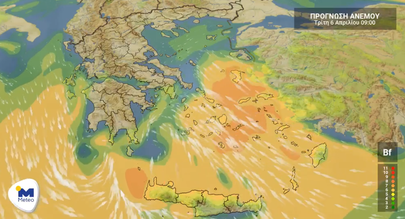 Οι άνεμοι στο Κεντρικό και Βόρειο Αιγαίο θα πνέουν από βόρειες διευθύνσεις με εντάσεις έως 6 μποφόρ, ενώ στο Νότιο και Ανατολικό Αιγαίο θα επικρατήσουν πολύ θυελλώδεις άνεμοι νοτίων διευθύνσεων με εντάσεις έως 9 μποφόρ. Στο Ιόνιο θα πνέουν δυτικοί νοτιοδυτικοί άνεμοι με εντάσεις έως 6 και πρόσκαιρα τοπικά 7 μποφόρ.