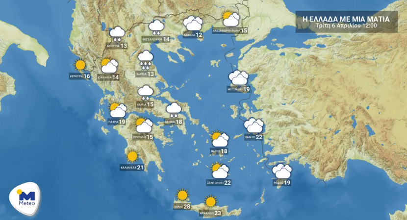 Τοπικές λασπoβροχές στα ηπειρωτικά και στο Αιγαίο θα σημειωθούν σήμερα, Τρίτη 6 Απριλίου 2021, με. υψηλές θερμοκρασίες κυρίως στα νότια. Νότιοι άνεμοι θα πνέουν θυελλώδεις φθάνοντας τα 9 μποφόρ στο Αιγαίο, ενώ αυξημένες θα είναι και οι συγκεντρώσεις αφρικανικής σκόνης.