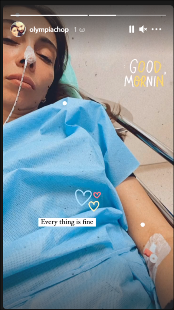 Την είδηση έκανε γνωστή η ίδια, με μια ανάρτησή της στο Instagram, ενώ λίγο αργότερα, με νέα της ανάρτηση ενημέρωσε τους διαδικτυακούς της φίλους ότι πλέον είναι μια χαρά και βρίσκεται ήδη στο σπίτι της.