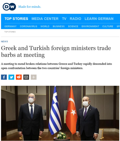 DW: Σύγκρουση στη συνάντηση των υπουργών Εξωτερικών Ελλάδας και Τουρκίας