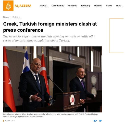 Al Jazeera: Οι υπουργοί Εξωτερικών Ελλάδας και Τουρκίας συγκρούονται σε συνέντευξη Τύπου