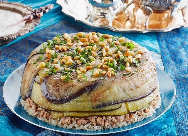 Η γενική ιδέα είναι ότι αυτό το πιάτο αποτελείται από στρώσεις λαχανικών, κρέατος και ρυζιού αναποδογυρισμένων για μια εντυπωσιακή παρουσίαση.