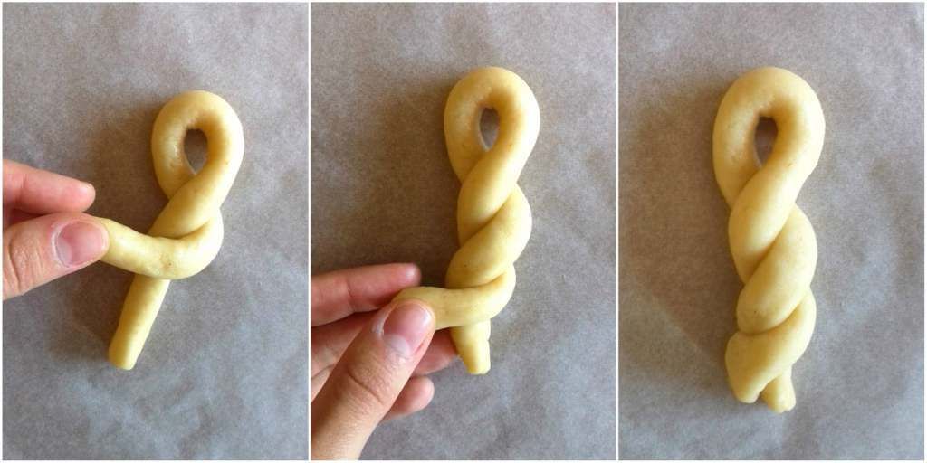 Τέλος βάζουμε το αλεύρι ανακατεύοντας απαλά έτσι ώστε να μην κορδάρει η ζύμη και γίνει σαν τσουρέκι. Αφήνουμε τη ζύμη να ξεκουραστεί για μισή ώρα και πλάθουμε κουλουράκια στο επιθυμητό σχήμα και σχέδιο. Χτυπάμε τον κρόκο με το νερό ελαφρά και αλείφουμε με ένα πινέλο τα κουλούρια μας για να πάρουν ωραίο χρώμα.
