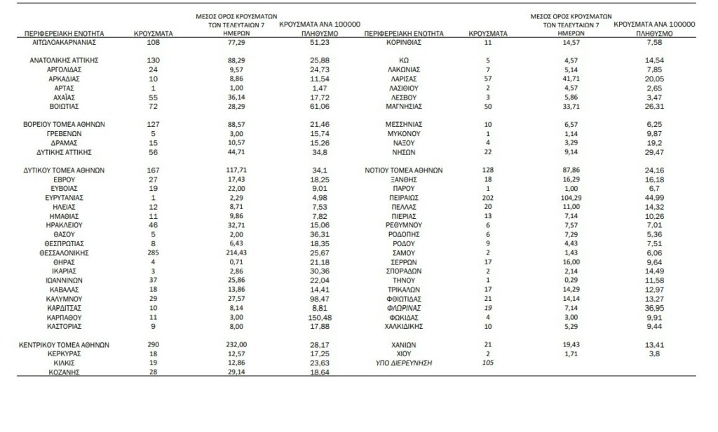 Από το σύνολο των κρουσμάτων τα 1.122 κρούσματα εντοπίζονται στην Αττική.