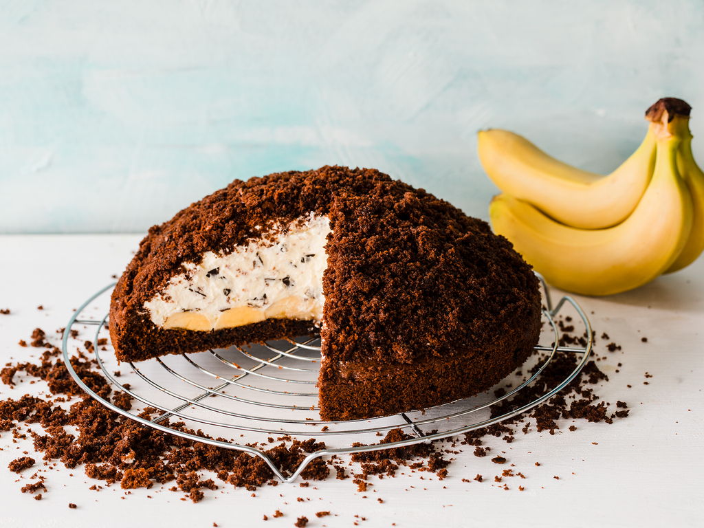 Το γερμανικό αυτό κέικ, γνωστό ως Maulwurfkuchen έχει για βάση του ένα απλό κέικ σοκολάτας και είναι γεμισμένο με μπανάνες και κρέμα σαντιγί.
