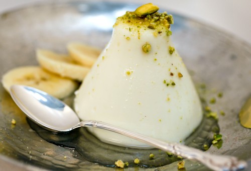Πρόκειται για μια πολύ κρεμώδη πουτίγκα, με λίγη ζάχαρη, που σερβίρεται με σιρόπι στο πλάι και συγκεντρώνει όλα τα αρώματα της Ανατολής, όπως το ροδόνερο, η μαστίχα και τα άνθη πορτοκαλιού.