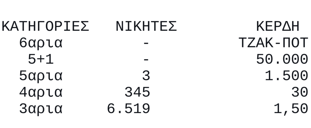 Τα αποτελέσματα σε ΠΡΟΠΟ, ΛΟΤΤΟ και SUPER3